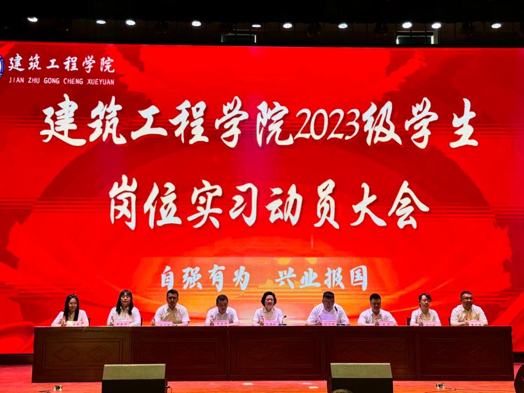 为推动2023级学生岗位实习工作顺利开展,帮助学生更好地适应职场环境、提升实践能力,2025年5月30日,建筑工程学院在工匠楼礼堂隆重举行2023级学生岗位实习动员大会。学院党总支书记范海波、党总支副书记孙若鹏、各教研室主任、全体教职工及2023级全体学生参会,会议由孙若鹏主持。