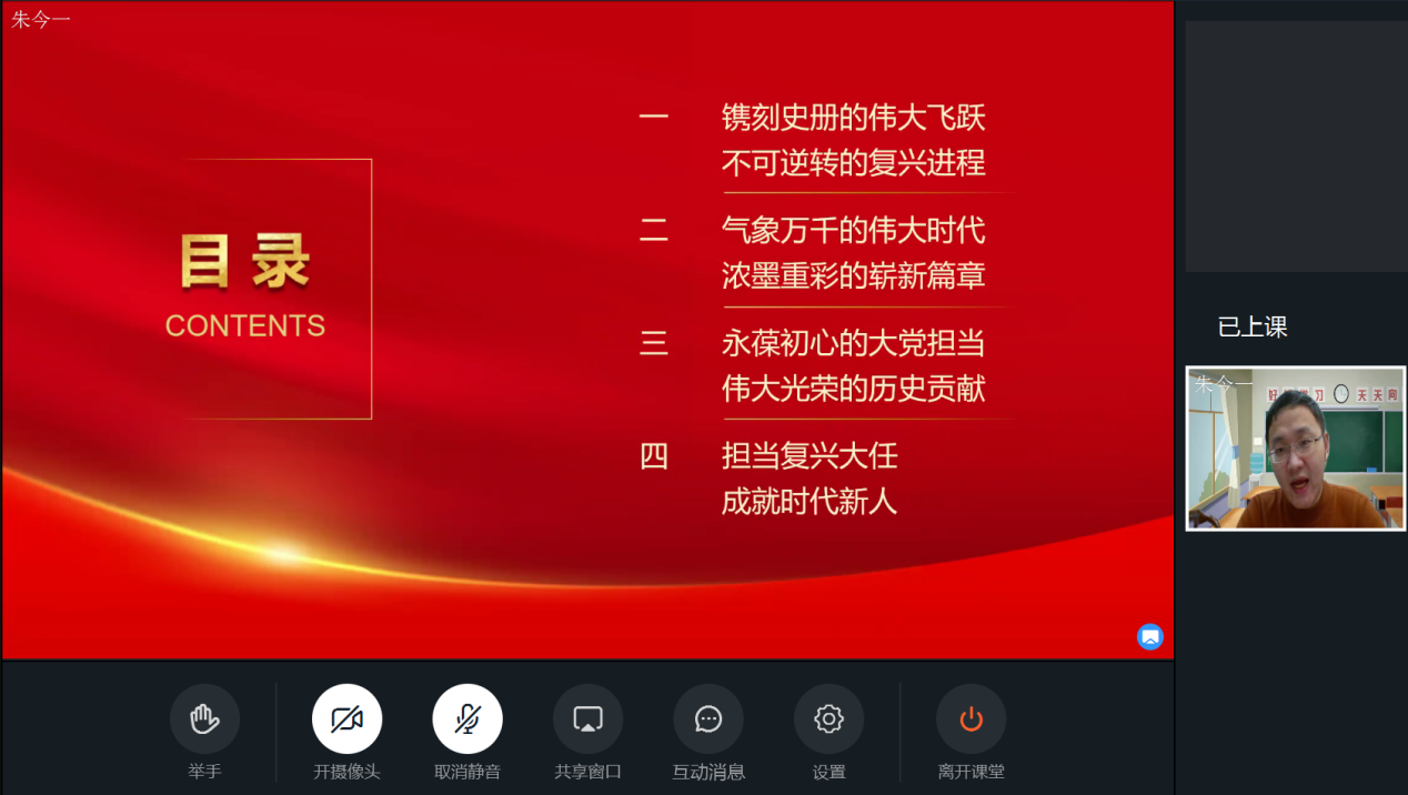 朱今一老师理论扎实,宣讲内容精彩,以《青春梦想时代担当—新时代大学生的未来成长》为主题,从“镌刻史册的伟大飞跃,不可逆转的复兴进程”、“气象万千的伟大时代,浓墨重彩的崭新篇章”、“永葆初心的大党担当,伟大光荣的历史贡献”以及“担当复兴大任,成就时代新人”4个方面,系统梳理了十九届六中全会精神的丰富内涵,通过“两个结合”、“十个明确”深刻阐释了习近平新时代中国特色社会主义思想的出现实现了马克思主义中国化新的飞跃。回顾总结了党的百年奋斗的光辉历程、伟大成就、宝贵经验,总结了百年奋斗的历史意义,同时剖析了我们目前所面临的形势以及时代青年的责任担当。中国梦是历史的、现实的,也是未来的,中国梦是国家的、民族的,也是每一个中国人的,希望所有的青年学生都能立大志、明大德、成大才、担大任,为实现中华民族伟大复兴、实现中国梦而努力奋斗。