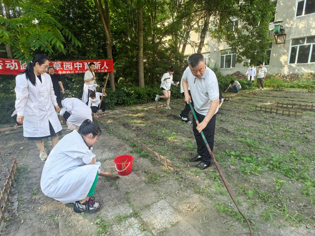 按照《食品药品学院劳动育人活动月实施方案》安排,食品药品学院党总支于2025年6月24日组织开展了药用植物园劳动育人实践活动。学院党总支书记带领全体教师党员、学生入党积极分子、各班级团支书及优秀学生共同参与,以实际行动践行劳动育人理念。