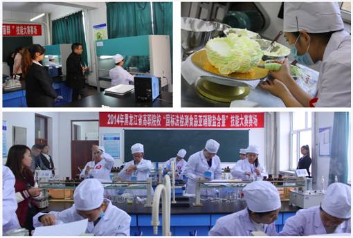 2014年11月1日,二校区校园内秋风瑟瑟,但是二号实训楼西侧的一至三层的实训室里,却滚动着一股股热浪,这里正在进行黑龙江省高职院校食品类专业学生技能大赛。一楼的焙烤加工实训室,选手们妙手制作的蛋糕和西点,飘散着诱人的香气;二楼的大肠菌群检测赛场,无菌操作台前选手们一丝不苟地操作着;三楼的亚硝酸盐含量检测赛场,二个选手分工协作,在实验台前一忙就是二个半小时……窗外飘舞的落叶,似乎是在为这一群执着的学生鼓掌……