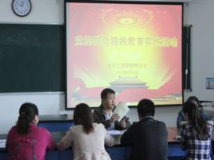 9月4日下午,我院党总支在2号实训楼417召开了全体党员工作会议,传达学院关于党的群众路线教育实践活动工作会议精神,学习了学院党委书记冯玉龙同志在学院党的群众路线教育实践活动动员大会上的讲话及《学院开展党的群众路线教育实践活动实施方案》(黑经院字[2013]20号),结合目前食品工程学院实际,重点讨论研究了我院深入开展群众教育实践活动实施方案的指导思想、方法步骤、重点环节及组织领导等要点内容。