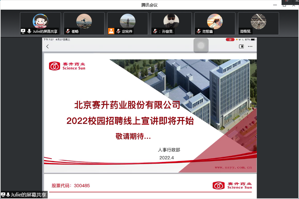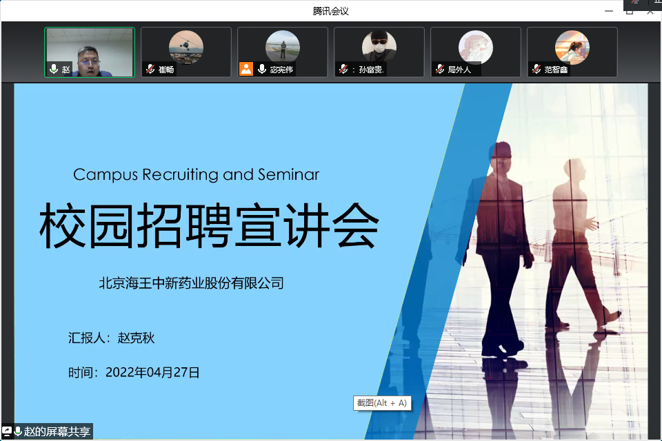2022年4月27日18时,食品药品学院携手北京生物制品研究所有限责任公司、北京海王中新药业股份有限公司、北京艾丝碧西食品有限公司、浙江一鸣食品有限公司等9家优质企业,以腾讯会议为依托开展线上招聘会,为2022届毕业生提供岗位近500余个,本次招聘会由食品药品学院学管办主任宓宪伟主持,共计200余名应届毕业生参加。