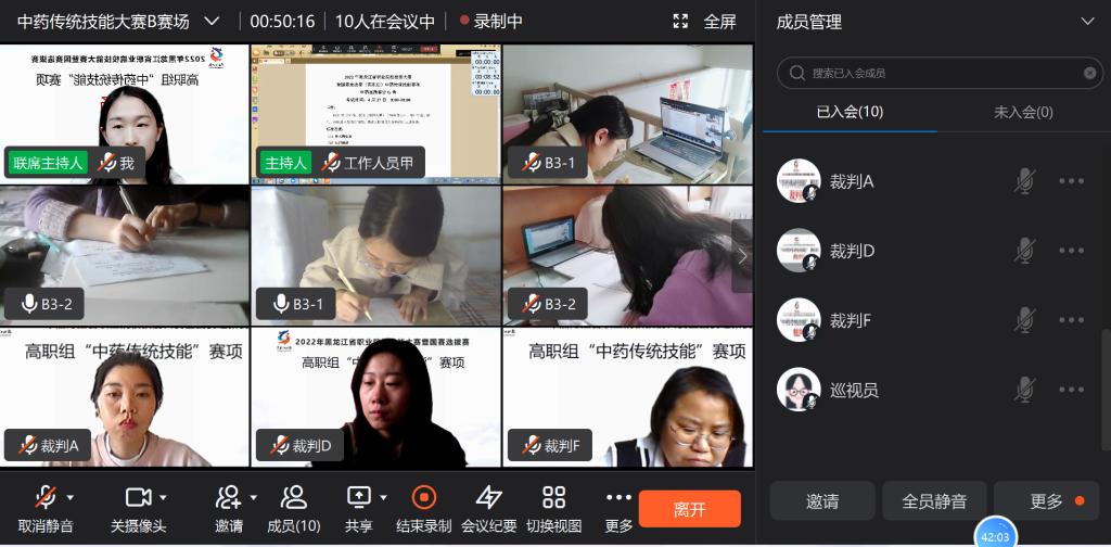在大赛筹备过程中食品药品学院领导亲自参与并指导,经过多次修订赛项规程,补充通知等相关文件,召开赛项说明会,与参赛院校就线上比赛的相关事项达成了共识。经过反复测试最终选定钉钉平台进行比赛。