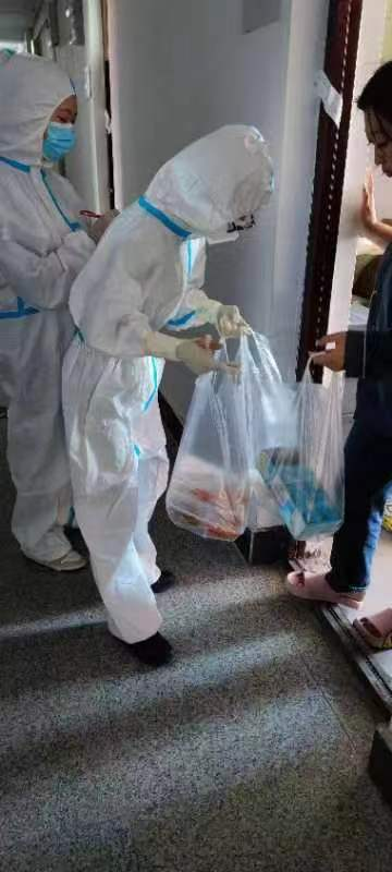 按照学校疫情防控工作要求,确保2022年秋季学期学生返校期间“零感染”,在校党委的坚强领导下,食品药品学院党总支迅速启动“党建+疫情防控”模式,充分发挥党总支的核心作用和基层党支部的战斗堡垒作用,组建教工志愿服务团,兵分送餐组和公寓组,负责学生健康保障工作,将初心写在抗“疫”一线,让鲜红的党旗在义无反顾中增辉。