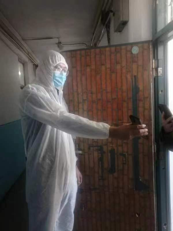 党总支副书记高财智带领送餐组辅导员,手递手接过返校学生,消毒、入寝、送餐等工作环环紧扣;搜集整理学生行程信息、和学生谈心谈话、疏导学生紧张情绪,事无巨细地为学生解难题、办实事。