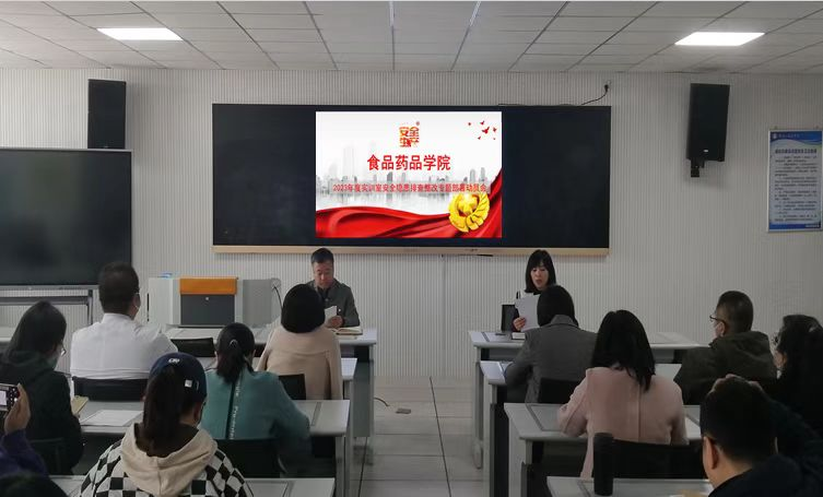 4月12日,在2号实训楼510教室,学院组织召开了实训室安全隐患排查整改专题部署动员会,食品药品学院院长赵岩、副院长韩双及全体教师参加。动员会上落实了《教育部办公厅关于组织2023年高等学校实验室安全检查工作的通知》,明确了学院2023年实训室安全工作的重点,深入排查实训室常见安全隐患,对进一步完善实训室安全管理体系,提高实验室安全管理能力和水平具有推动作用。