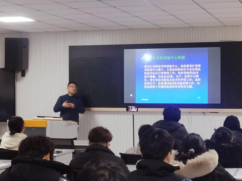 我院产教融合活动周系列活动在学生中产生了热烈反响,根据学生反馈,12月1日学院邀请到了黑龙江省药品监督局管理局药品评价和风险检测中心主任李百强处长做客我院,为生物制药技术专业22级学生开展了一场关于药学专业应知应会的专题讲座。