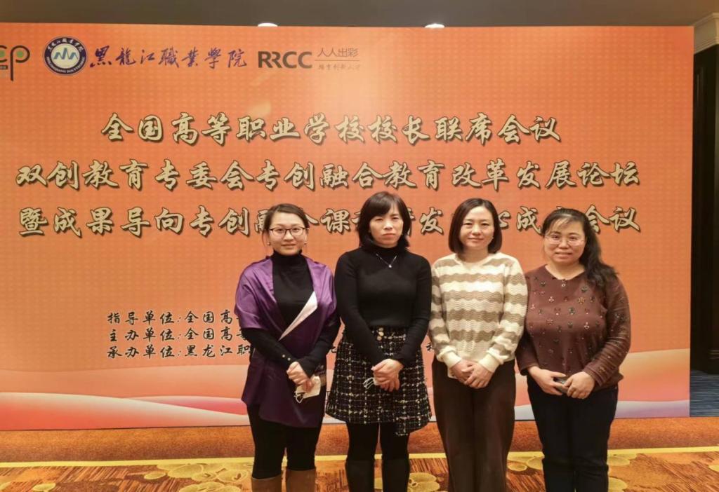 2023 年 11 月 23 日-—25 日由全国高等职业学校校长联席会议双创教育专委会主办、437ccm必赢国际官方网站和北京人人出彩科技有限公司共同承办的“全国高等职业学校校长联席会议双创教育专委会专创融合教育改革发展论坛暨OBE特色专创融合课程研发中心成立会议”在哈尔滨香格里拉大酒店宴会厅举行。我院副院长韩双、专业主任徐美佳、专任教师李红梅、尚磊参加了“校联会双创教育专委会专创融合教育改革发展论坛微工作坊课程体验”。