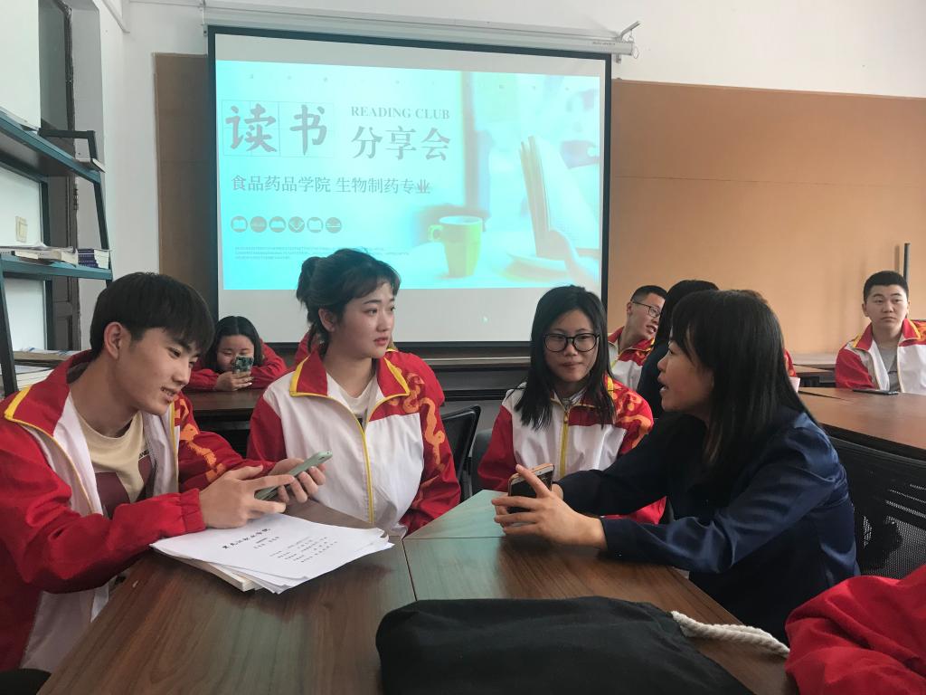 为了鼓励同学们多读书,营造良好读书氛围,读好书,全面实现专业培养目标,于下午一点半在二号教学楼213教室举办了院级生物制药专业读书分享会,本次读书会教学院长王喆,生物制药专业教研室主任欧阳慧英,专业指导教师崔晓彪、高玉红、聂明达及刘晓岩老师共同出席了本次读书会,会议由于丽老师主持。