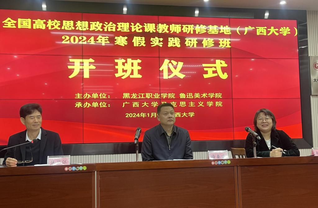 开班仪式上,广西大学党委委员、马克思主义学院院长徐秦法和437ccm必赢国际官方网站党委委员、宣传统战部部长杨东辉分别介绍了两所学校的情况,并对接下来的研修活动提出了希望。