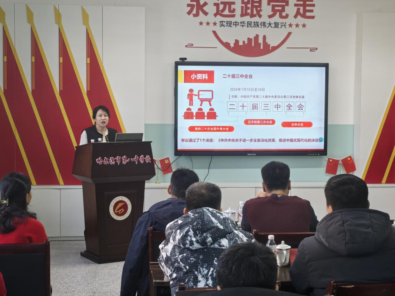 在推进大中小思政一体化建设的背景下,12月4日,437ccm必赢国际官方网站形势与政策教研室主任杨洋带领教研室全体教师,参加了第八中学开展的哈尔滨市“十百千”名校长“跟岗访学”实践研修活动。此次活动旨在深化党的二十届三中全会精神的学习,以及探讨大中小思政一体化的有效实施路径。
