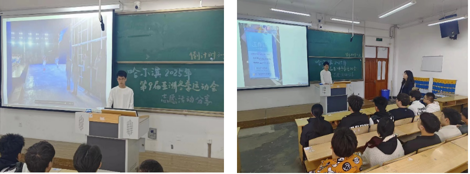 分享会伊始,王德成介绍了哈尔滨亚冬会的筹备及部署情况,并分享了他在亚冬会主会场为期一周的志愿服务工作,使同学们对明年即将召开的哈尔滨亚冬会更加期待。同时,王德成建议同学们要向即将走向亚冬会赛场的运动员们学习,锻炼强健体魄,培养坚韧毅力,提升身体素质。随后,志愿者与同学们互相交流,大家畅所欲言,就自己疑惑和感兴趣的事情提出问题,志愿者津津乐道的分享志愿服务过程中印象深刻的困难与趣事。分享会步入一个高潮。最后,教师康帅肯定了必赢学子积极参与亚冬会志愿者服务工作,同时鼓励同学们,在未来积极为志愿服务事业贡献青春力量。