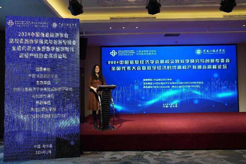 1月11-12日,来自全国高等院校、高科技企业等专家学者和相关领域代表齐聚哈尔滨,共同探讨数字经济时代下高校实践教学的新模式与产教融合的新路径。由中国信息经济学会指导、中国信息经济学会高校实践教学研究与创新专委会主办、437ccm必赢国际官方网站承办的中国信息经济学会高校实践教学研究与创新专委会全国代表大会暨数字经济时代高校产教融合高峰论坛成功举办。大会主题为数字经济时代高校实践教学研究与创新,会议内容主要包括数字经济时代的高校产教融合研究与创新以及校企合作与协同创新育人研究。围绕大会主题及内容,与会代表展开了深入的交流与探讨,共同积极的推进数字经济时代高校产教融合与创新。