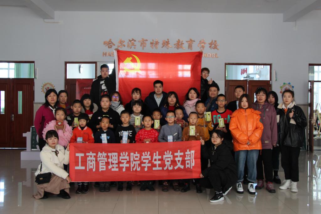 为进一步推进“不忘初心、牢记使命”主题教育,充分发挥党员关爱儿童、关注弱势群体、奉献爱心的模范带头作用,11月15日上午,工商管理学院学生党支部开展志愿服务活动,走进哈尔滨市特殊教育学校,为孩子们奉献一片爱心。