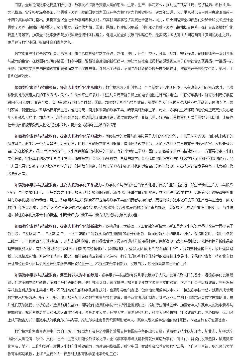 提升全民数字素养与技能专家系列解读|加强数字素养与技能教育 培养合格数字公民