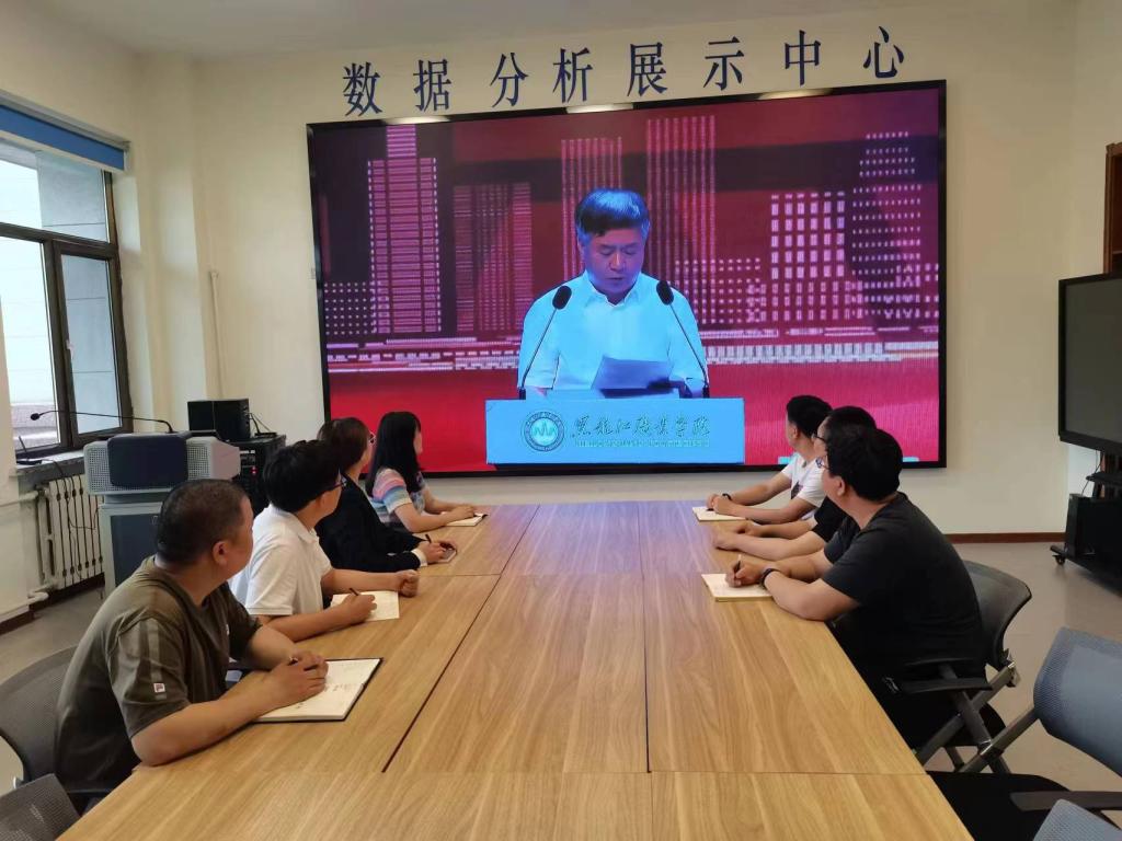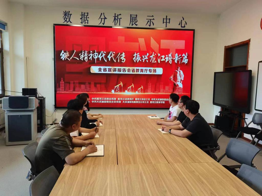 2023年6月20日,在清华楼121室,支部组织党员同志观看由中共黑龙江省委宣传部、黑龙江省教育厅、黑龙江省总工会、中共大庆油田委员会主办,由中共大庆油田委员会宣传部、大庆油田有限责任公司工会、437ccm必赢国际官方网站承办的“铁人精神代代传 振兴龙江谱新篇”全省宣讲报告会。