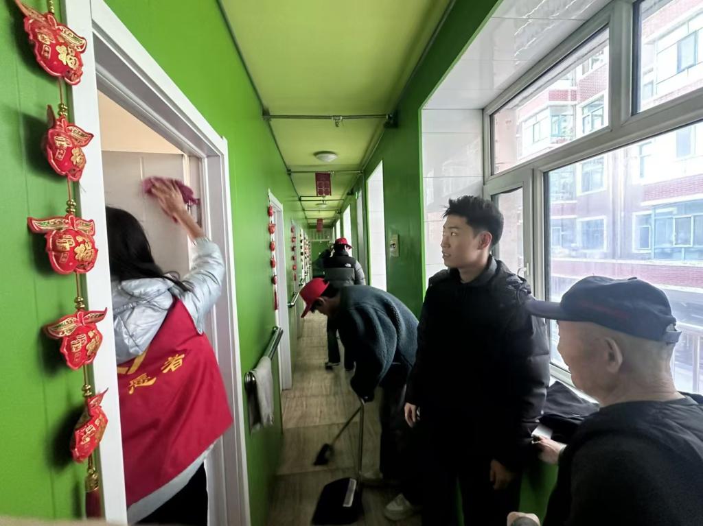 志愿者前往敬老院,为老人打扫房间、整理庭院、清理垃圾、擦洗玻璃等,陪伴老人聊天、下棋、看表演等,给老人带去关爱、欢乐和温暖,弘扬中华民族“敬老爱老”的传统美德。