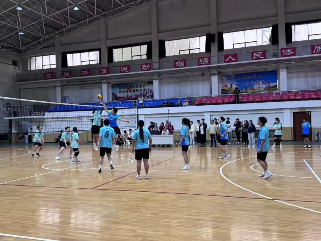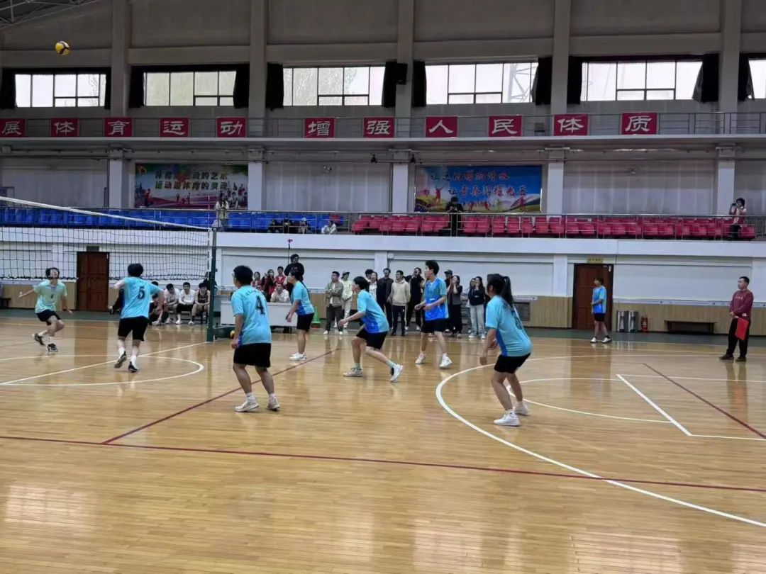 赛场上,队员们默契配合,奋力拼搏,发球、传球、垫球、网前击球,每个动作都展现出扎实的基本功和顽强的拼搏精神。