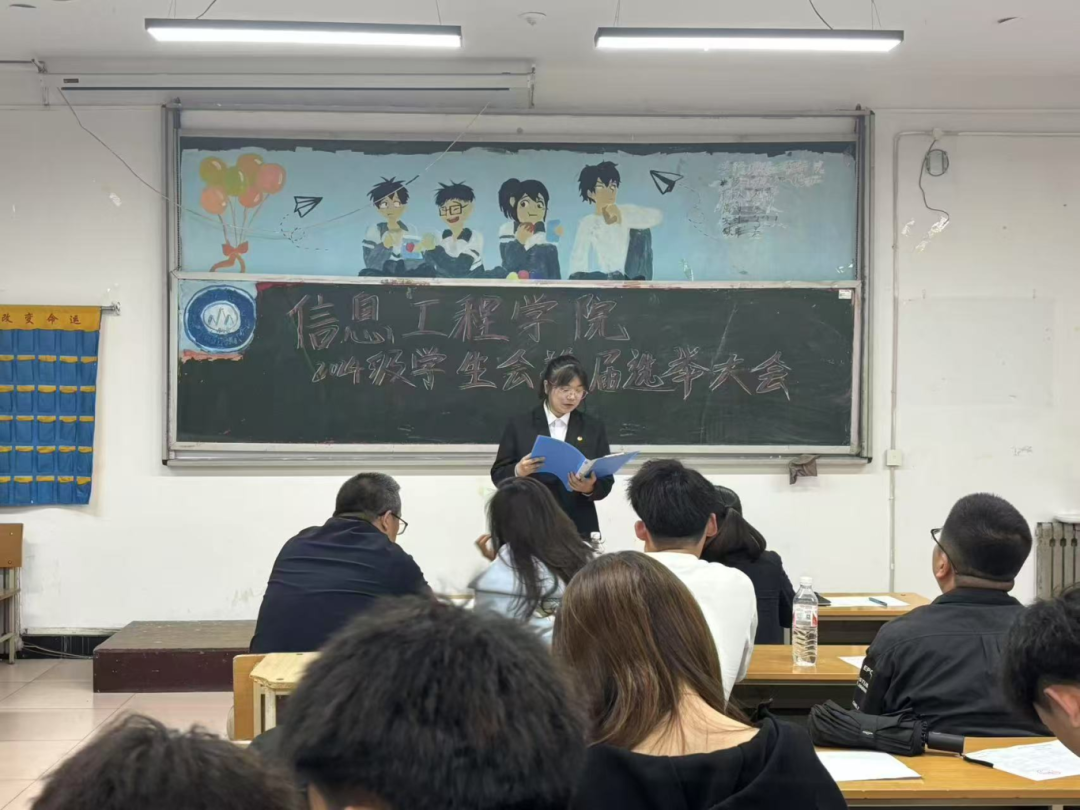 承前启后担使命,继往开来谱新篇。本次换届选举大会的成功举办,为信息工程学院学生会注入了新鲜血液和强劲动力。我们坚信,在学院党总支的坚强领导和团总支的悉心指导下,新一届学生会定能不负众望,团结带领全体学生会成员和广大同学,以更加昂扬的斗志、更加务实的作风,踔厉奋发,勇毅前行,为服务同学成长、促进学院发展贡献青春智慧与力量,共同开创信息工程学院更加辉煌灿烂的明天。