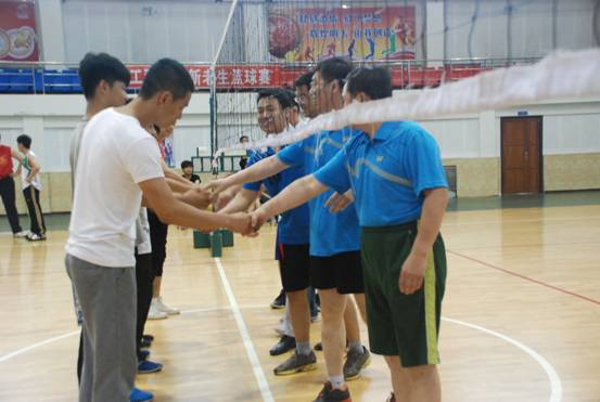 本次排球比赛将大家的心连到了一起,加强了师生间的交流和认识,增强了集体凝聚力,愉悦了身心,强健了体魄,也使大家意识到要想赢得比赛,个体技能是必不可少的,但关键还是靠团结协作的精神和强劲的集体实力。赛后,老师与同学们握手,并与队员们合影留念。