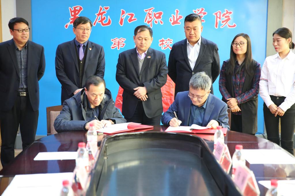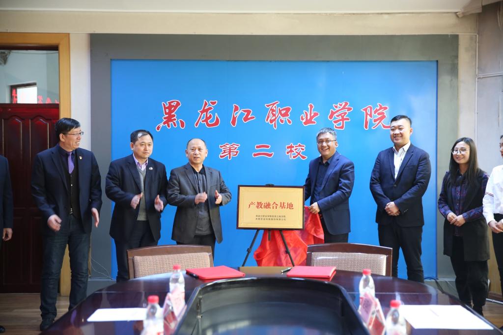 钟敏强首先代表学校对企业代表表示了热烈的欢迎,介绍必赢综合实力和发展前景,表示在将来的合作中坚持“面向未来、加强合作、优势互补、共同发展”的宗旨,建立并发展双方的友好合作关系。然后,景士俊就公司情况,合作内容进行了详细阐述并表达了深度合作的良好愿望。随后,钟敏强和景士俊分别代表校企双方签订《龙职•天阳宏业产教融合协议》,孙福忠和景士俊共同为产教融合基地揭牌。