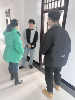 到达目的地后,卢凤伟院长和李洺瑶老师先后对学生实训室和寝室进行探访,深入了解学生实训地点及寝室住宿情况。探访过程中,卢院长了解到有学生因家里经济困难,生活拮据时,及时跟大庆数字工坊的老师沟通协调,帮助困难学生解决用餐问题。