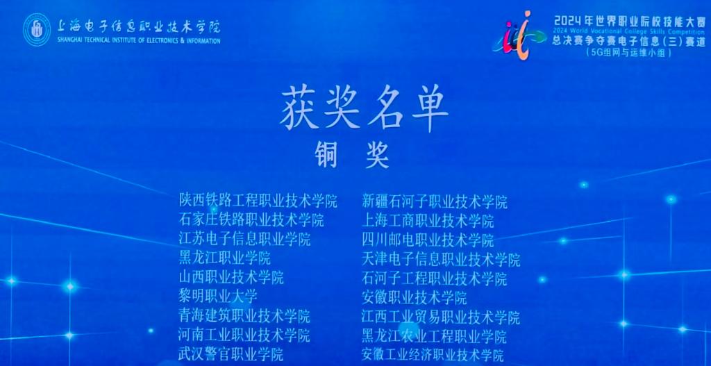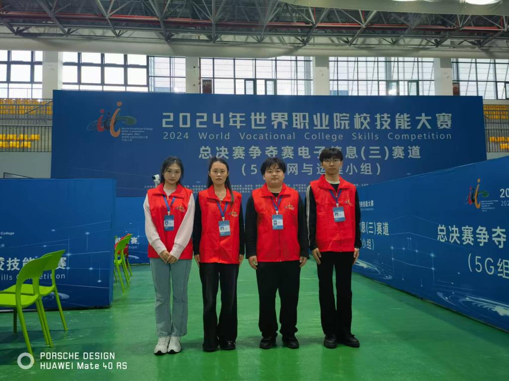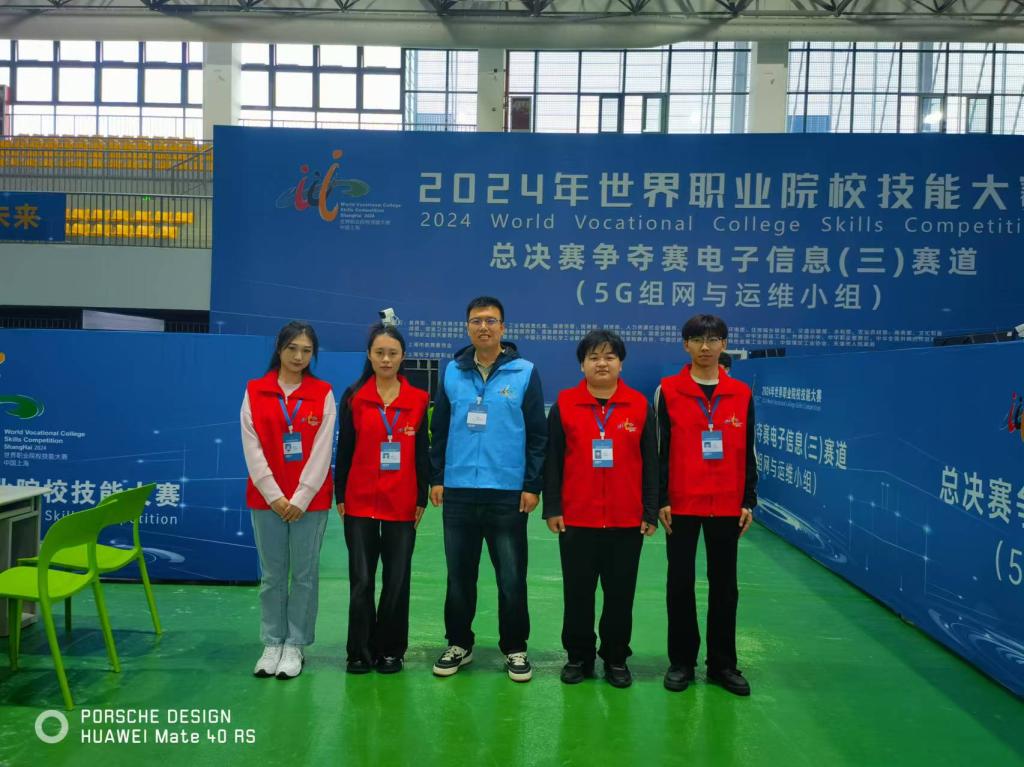 437ccm必赢国际官方网站在2024年世界职业院校技能大赛·电子与信息赛道三·5G组网与运维赛项中,张秀杰、罗洋两位教师指导何宗君、姚曼如、李博健、张馨月等4名同学获得争夺赛铜奖!