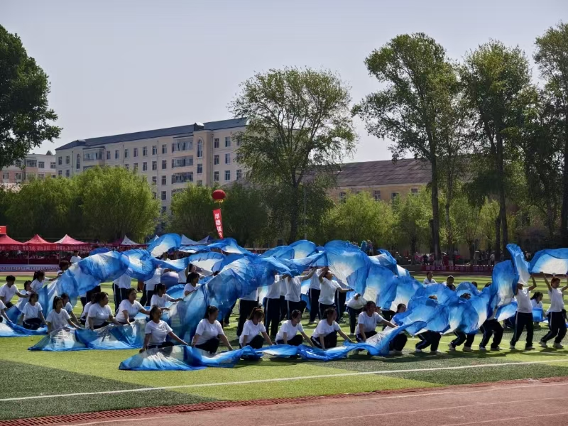由64名信息工程学院学子组成的学生方阵队,他们手中的蓝绸如数据洪流奔涌,似光纤信号跃动,在阳光下折射出数字时代的璀璨锋芒!你们是数字丝路的织梦人,更是强国征程上奔腾不息的蓝色浪潮!