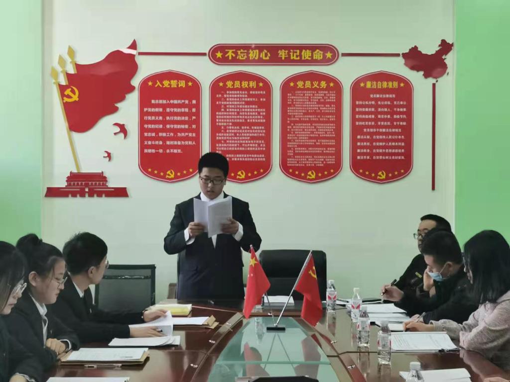 最后,党总支书记王文焕对通过票决的预备党员表示祝贺,并提出三点希望:一是要按照党员要求,在岗位上发挥先锋模范带头作用;二是要严格要求自己,时刻践行一名党员的职责和责任,在今后的学习、生活和工作中,处处时时以党员标准严格要求自己,处处时时体现出党员的先进性;三是马上要进入工作岗位,一定要按期交纳党费。