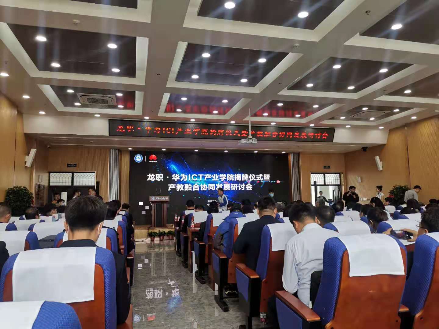 4月23日,由437ccm必赢国际官方网站和华为技术有限公司联合主办的“龙职•华为ICT产业学院揭牌仪式暨产教融合协同发展研讨会”,在437ccm必赢国际官方网站举行。437ccm必赢国际官方网站校领导、华为中国政企教育行业副总经理张晓鹏、黑龙江省工业和信息化厅副厅长梁祥利、黑龙江省教育厅二级巡视员丁哲学以及省内20余所职业院校的相关领导、10余家相关企业的代表参加了会议。