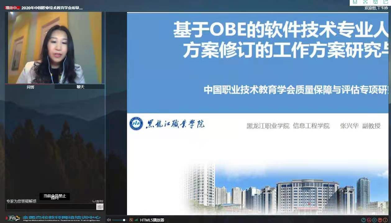 张兴华代表职业院校在中国职业技术教育学会质量保障与评估专业委员会2020年年会暨学术研讨会上作交流分享报告,在职教战线上影响力很大,为学校争得了荣誉。希望学校有更多的老师能带着成果走出校门、走出龙江、走向全国。