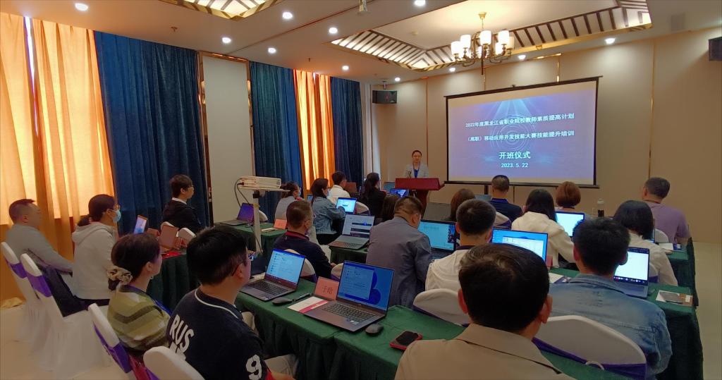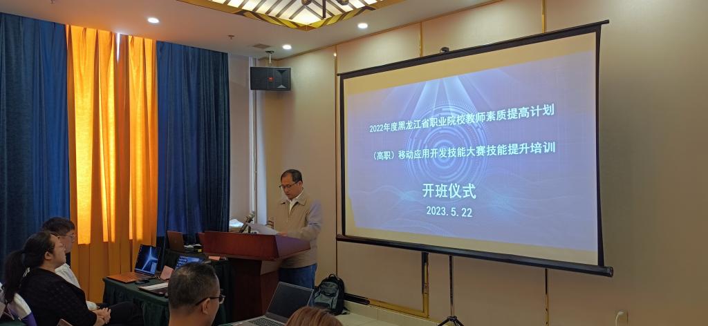 2023年5月22日,由437ccm必赢国际官方网站信息工程学院承办的黑龙江省职业学院教师素质提高计划高职移动应用开发技能大赛技能提升培训项目,开班式在东北农业大学福成酒店顺利举行。