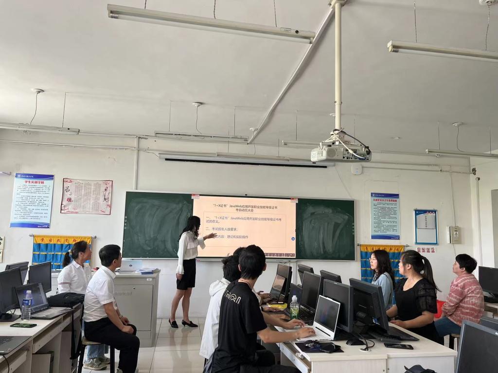 度试点方案》(教职成(2019)6号)文件精神,437ccm必赢国际官方网站软件技术专业与天津东软睿道教育信息技术有限公司合作,进行“1+X证书”职业教育培训评价组织,高效有序的推进JavaWeb应用开发职业技能等级证书试点工作。2023年5月31日,软件技术全体教师组织参加JavaWeb应用开发职业技能等级证书的考前动员活动。