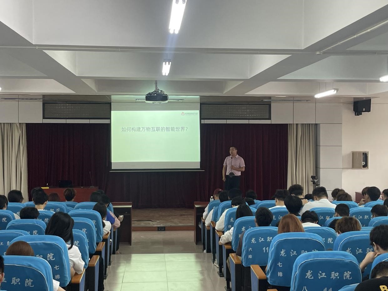 在数字化浪潮不断涌动的今天,物联网技术已成为推动社会进步的重要力量。6月20日晚,一场主题为“构建万物互联的智能世界”的专题讲座在龙职信息工程学院隆重举行。本次讲座由华为公司技术专家、专家级工程师吴健先生主讲,吸引了信息工程学院计算机网络技术专业大一学生的热情参与。