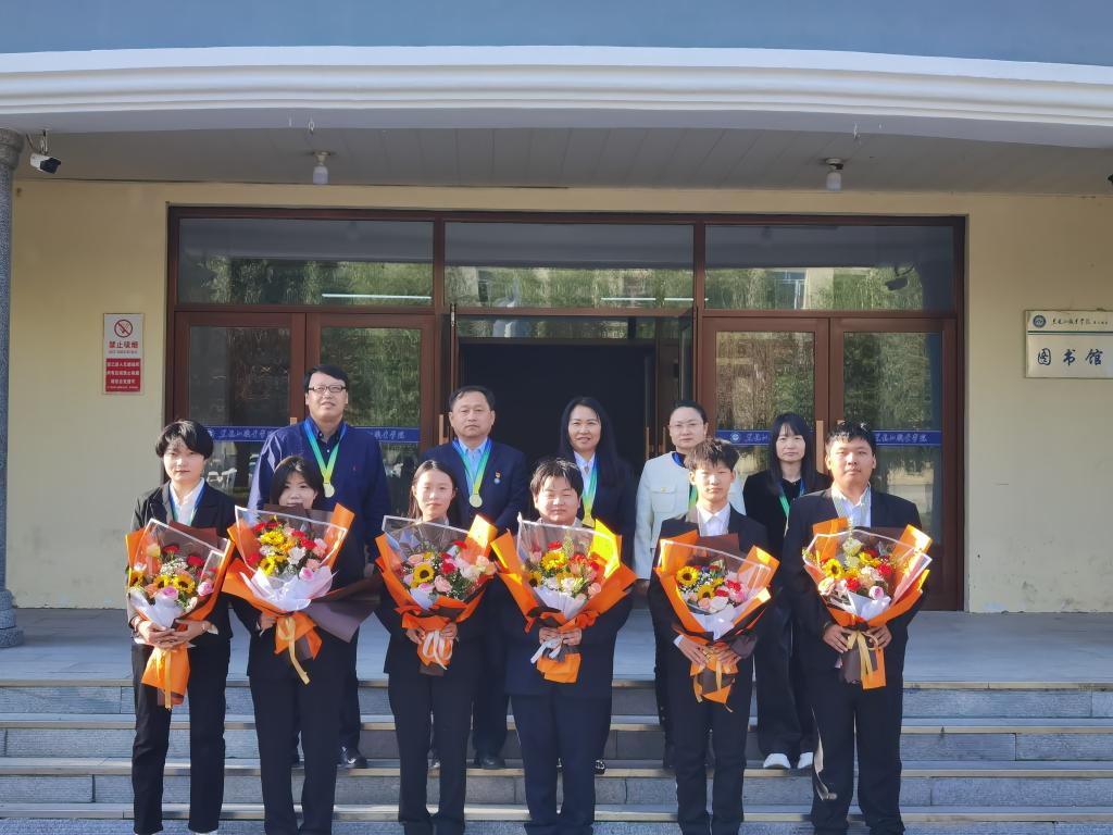 左1:院长:张晓霖、党总支书记:金忠伟;指导教师:张秀杰、卢凤伟、刘崇巍