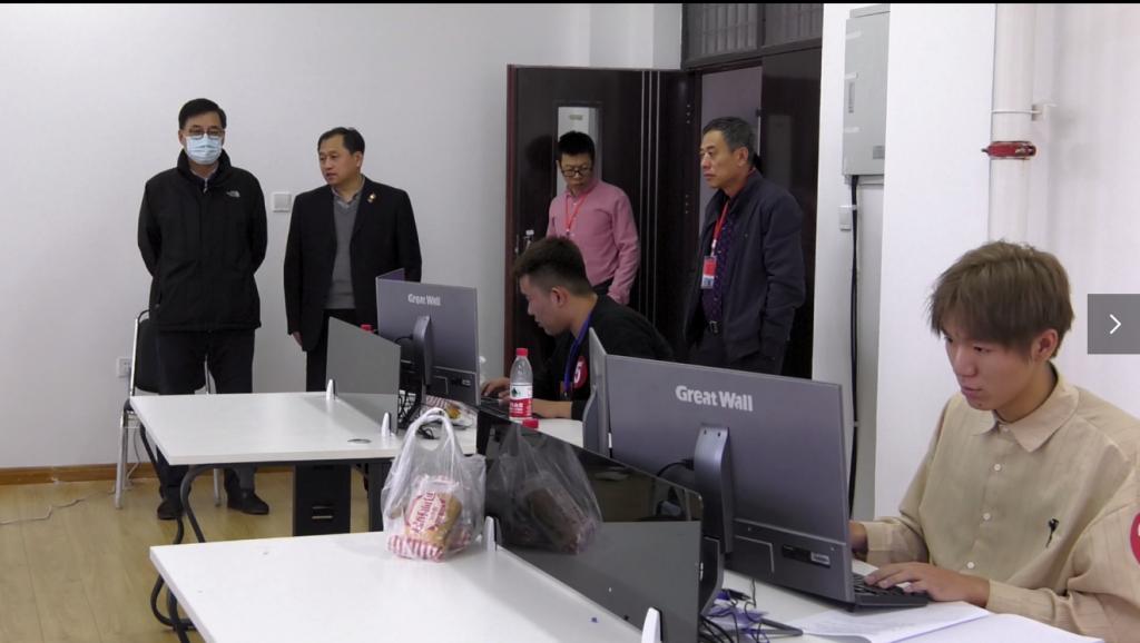 学校领导莅临赛场检查指导工作 裁判为一等奖获得者王志远和指导教师颁奖现场照