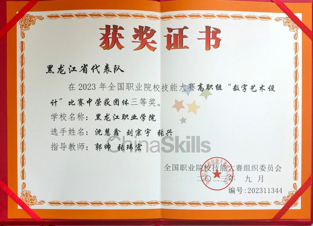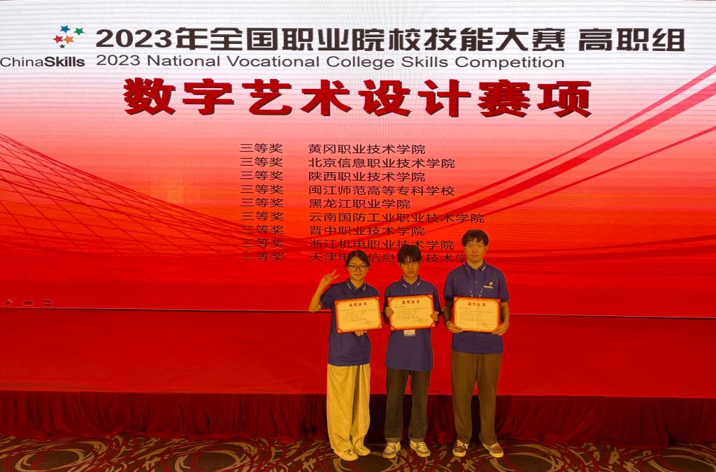 9月24-27日,2023年全国职业院校技能大赛“数字艺术设计”赛项,在天津中德职业大学落下帷幕,必赢信息工程学院动漫制作技术专业学生沈慧鑫、刘宗宇、张兴经过8个小时的激烈竞争,最终取得了团体三等奖的好成绩。