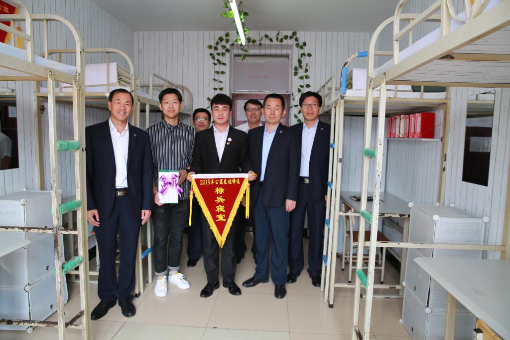 在检查过程中,周家郁书记亲自给以上获奖寝室颁奖,并与获奖寝室学生亲切合影,并对寝室标准化建设提出要求和希望。