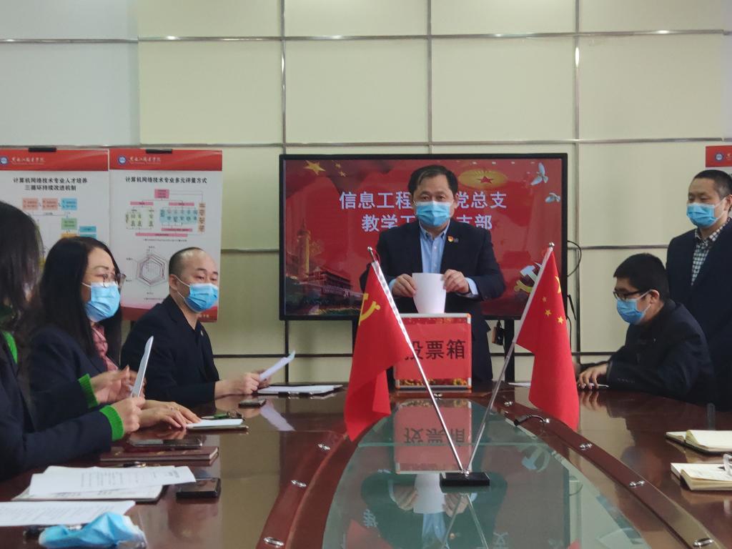 最后,卢凤伟代表新一届支部委员会发言,表示新一届支部委员会全体委员将继续加强党建知识学习,充分发挥党支部的战斗堡垒作用和党员的先进模范作用,带领全体党员教师,推动学校双高建设升级、高职院校升本、教学改革等各项重要教学工作不断蓬勃发展!