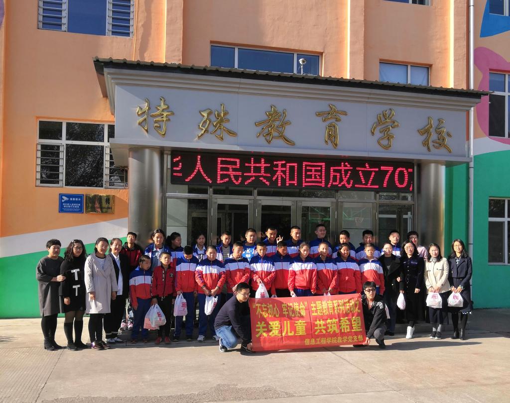 按照学校党委关于开展“不忘初心、牢记使命”主题教育工作的部署及方案要求,10月10日,信息工程学院党总支组织教师党员来到了双城区特殊教育学校,开展以“不忘初心、牢记使命”为主题的关爱儿童共筑希望志愿服务活动。13点30分来到双城区特殊教育学校,文霞校长、尹立新副校长对此次的志愿服务活动表示热烈欢迎,随后带领我们参观全校同时讲解了437ccm必赢国际官方网站。