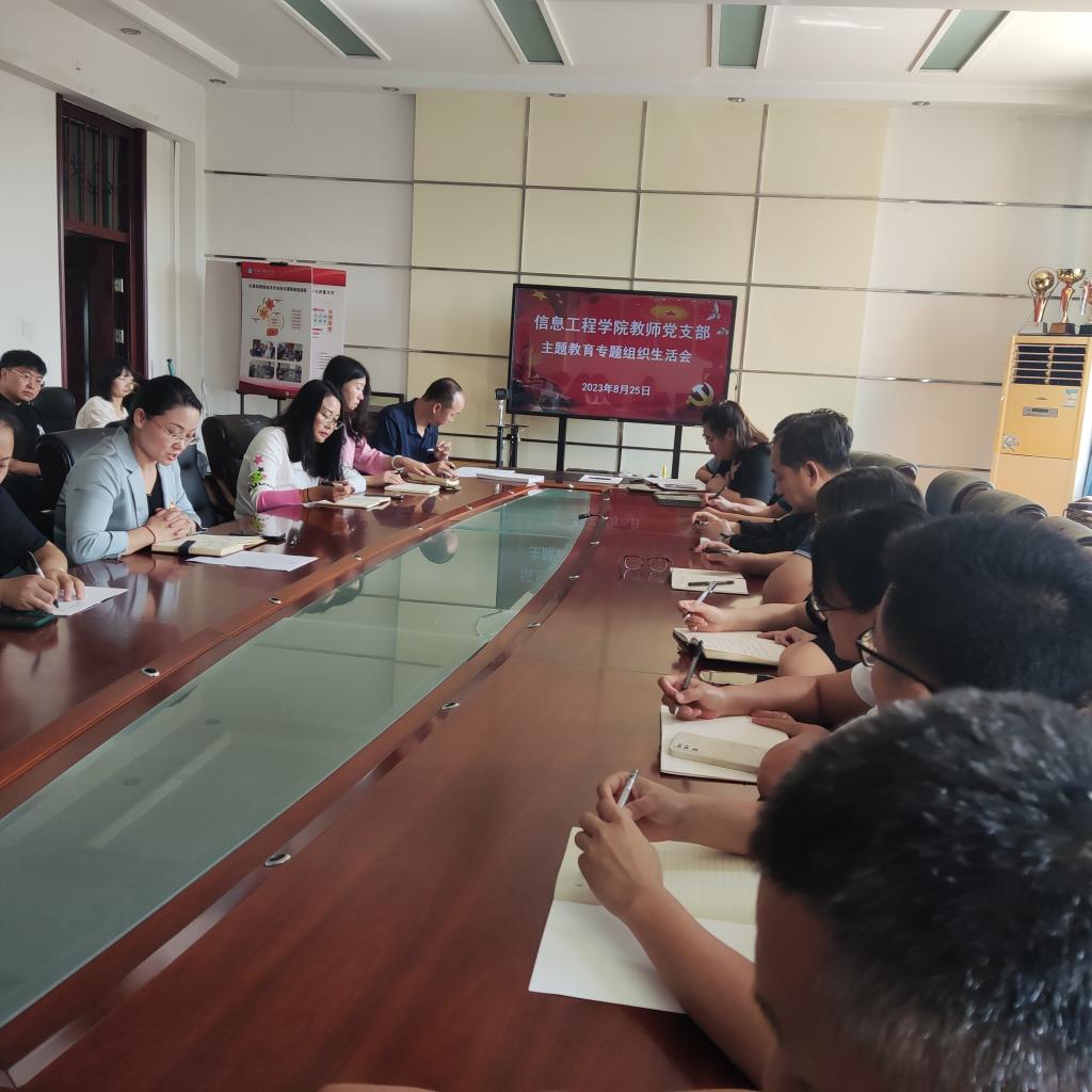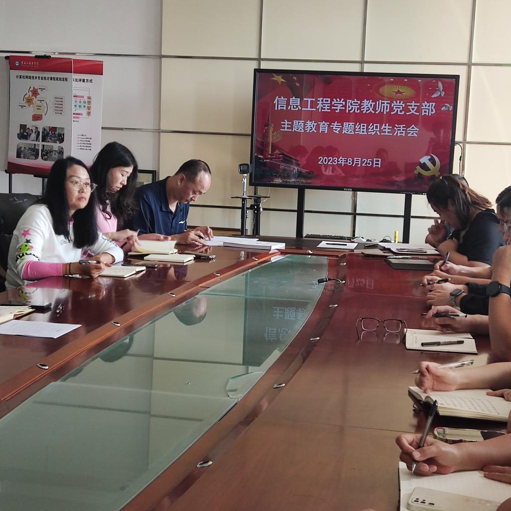 为深入学习贯彻习近平总书记关于主题教育重要讲话和重要指示批示精神,根据《中共中央纪委机关 中共中央组织部 中央学习贯彻习近平新时代中国特色社会主义思想主题教育领导小组关于在学习贯彻习近平新时代中国特色社会主义思想主题教育中开好专题民主生活会的通知》,8月25日9点30分,信息工程学院教师党支部在437ccm必赢国际官方网站第二校区511会议室召开了主题教育专题组织生活会。本次会议由教师党支部书记卢凤伟主持,支部全体党员参加本次会议。