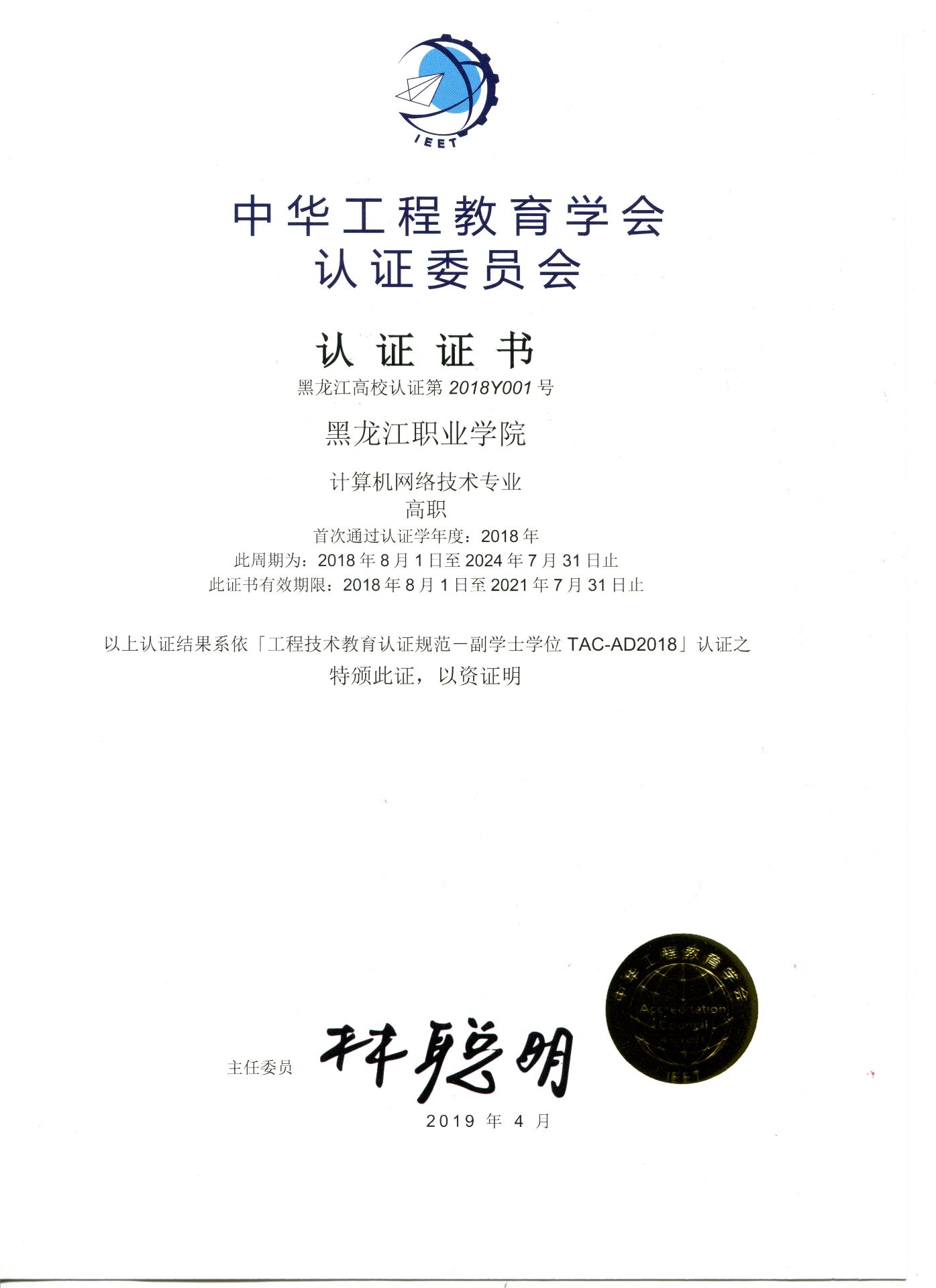 437ccm必赢国际官方网站信息工程学院计算机网络技术专业通过第一周期的IEET 工程教育认证,有效期3年。同时,黑龙江省首批参与和通过认证的两个专业分别是437ccm必赢国际官方网站的网络专业和数控专业。