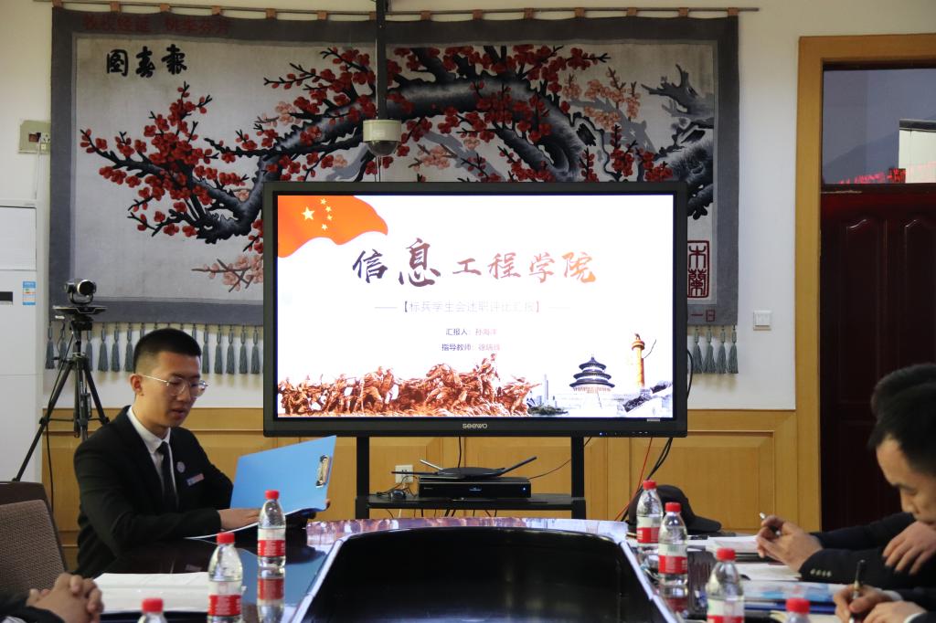 下午13:30,会议正式开始,由第二校区团委书记梁立宣读评比标准,首先评审团检阅各分院申报材料,其次,三个分院主席分别进行了述职演讲,我院学生会主席结合本院专业特色,全面系统总结了一年来在学生思想政治引领、学风建设、“四率”管理、活动课程实施、学生干部队伍建设、社会实践和志愿服务等方面取得的成绩,特别在“特色管理”工作上,增加了很多管理模式的创新和精神文化的凝炼,充分展示了我院学生会严于律己,再而律人的良好风貌。最后由学工部副部长赵彦生总结致辞并宣布评比结果,最终确定信息工程学院荣获“标兵学生会”称号。