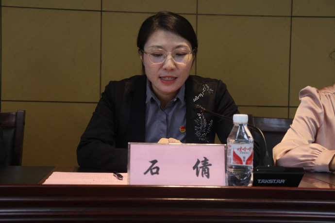 ▲学工部党总支书记、校团委书记石倩做总结讲话
