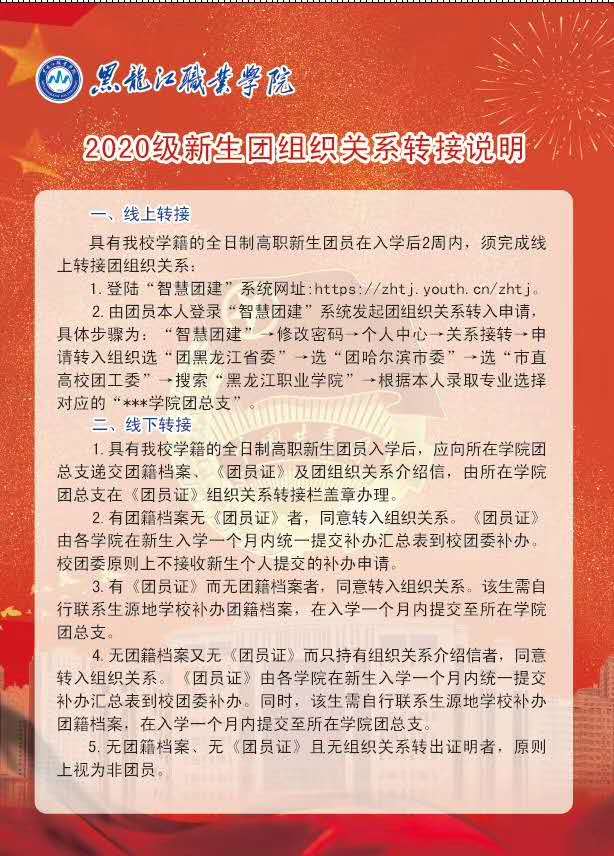 1、组织关系在黑龙江省且所在党组织接入“全国党员管理信息系统”的,均采用“全国党员管理信息系统”进行网上转接,不需要纸质介绍信,本人应提前与录取学院联系,明确转入的党支部。