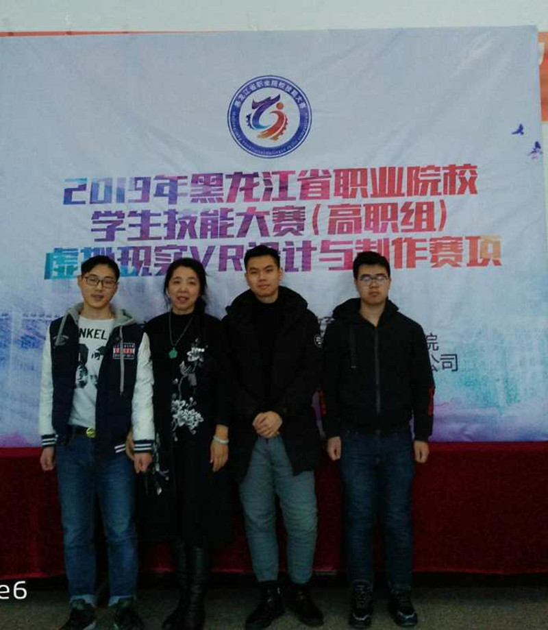 12月22日,由黑龙江省教育厅主办的黑龙江省职业院校学生技能大赛暨国赛选拔赛(高职组)“虚拟现实(VR)设计与制作”比赛顺利举行,共有五所学校参赛,信息工程学院动漫团队教师于雪梅、王月明带领2017级动漫专业学生谢亮、刘铭洲、丁佳明代表437ccm必赢国际官方网站参赛,三名学生经过4个小时的团队合作与精心制作,喜获第二名,顺利晋级国赛。