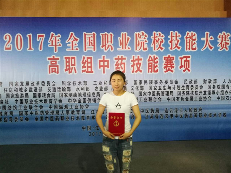 6月3 -4日,2017年全国职业院校技能大赛“高职组中药技能赛项”在江苏省连云港中医药高等职业技术学校隆重开幕,共有来自全国25支代表队的120名选手参加大赛。食品药品学院老师董术发带领中药制药专业2015级学生刘丽影和陈尧尧赴连云港参加比赛。经过两天紧张激烈的角逐,大赛顺利完成预定赛程,刘丽影顶住压力,奋力拼搏,最终荣获高职组个人总分三等奖的好成绩,同时也是黑龙江省代表队中唯一获奖的参赛选手,必赢也成为本届大赛黑龙江省代表队中唯一获奖的参赛院校。