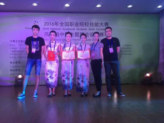 近日,2016年全国职业院校技能大赛高职组中餐主题宴会设计大赛在山东旅游职业学院正式拉开帷幕。旅游与人文艺术学院副院长李勇民,酒店管理专业教师唐思尧和李晓松带队参赛,参赛学生赵琳玮、高晓雨、张占杰凭借扎实的理论功底、娴熟的专业技能、精准的操作规范和良好的临场发挥,获得现场专家评委们的一致认可与好评,喜获本届大赛三等奖。