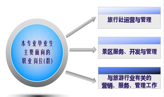 本专业面向旅游行业,培养具备旅游产品设计与开发、旅游产品销售、旅游行业对客服务、旅游企业管理等基本知识与方法,具备沟通协调、营销策划、团队协作的能力,从事旅行社运营、景区管理等工作,“精服务、懂管理、善策划”的服务人员和管理人员。