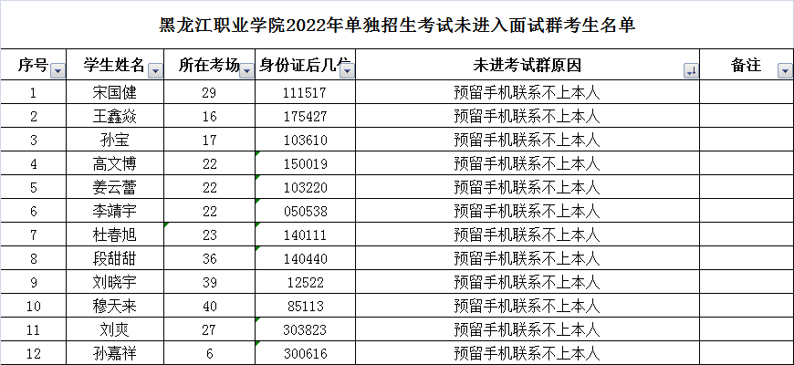 现无法与以下报考必赢2022年单独招生考生取得联系,请以下考生看到信息后速与必赢联系,否则,视为自动放弃考试资格。